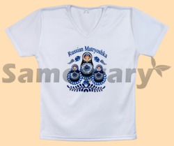 Каталог » Текстиль » Футболки с принтами » Футболка Матрёшка Гжель (размер S)
