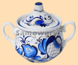 Сахарница расписная Гжель (керамика, 500 мл) (арт. 28636)