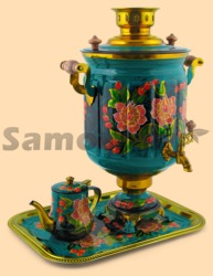 Каталог » Самовары ЭЛЕКТРИЧЕСКИЕ » Самовары электрические на 5л и более в наборе » Набор электрический Цветочная рапсодия на зелёном банка (10л)