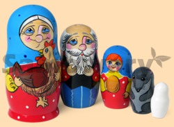 Каталог » Матрёшки » Матрёшки 5-ти местные (сюжетные) » Матрёшка Бабуля с курицей (5 мест)