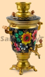 Самовар электрический Цветочный на чёрном рюмка (4л) (арт. 30192)