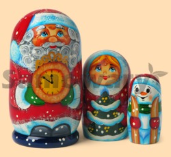 Каталог » Матрёшки » Матрёшки 3-х местные и менее (сюжетные) » Матрёшка Дед Мороз с часами (3 места)