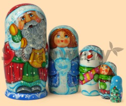 Каталог » Матрёшки » Матрёшки 5-ти местные (сюжетные) » Матрёшка Дед Мороз с телефоном (5 мест)