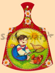 Каталог » Доски разделочные » Доски разделочные малые » Доска разделочная малая Девочка с петухом