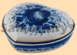 Шкатулка Гжель Сердце позолоченная (большая) (арт. 31471)