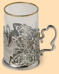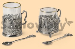 В комплекте ложка, стеклянный стакан, подарочная упаковка. Материал - посеребренная латунь Производитель Россия