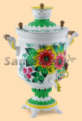 Самовар: - объем 7 литров - высота самовара 48 см - ширина самовара по ручки 38 см - материал: латунь - расписан вручную, покрыт лаком - растапливается с помощью дров или шишек - вес самовара 5 кг Производитель Тула
