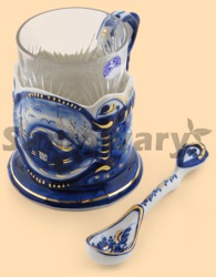 В комплекте: подстаканник, хрустальный стакан, керамическая ложка Материал: керамика с позолотой Производитель Гжель
