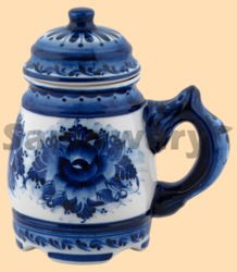 Высота 19 смОбъем 800 млГжель, ручная работаПроизводитель Россия