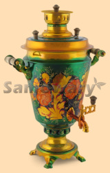 Каталог » Самовары жаровые (дровяные, угольные) » Самовары жаровые расписные (дровяные, угольные) » Самовар угольный Ягодки на зелёном рюмка (7л)