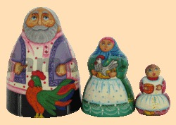 Каталог » Матрёшки » Матрёшки 3-х местные и менее (сюжетные) » Матрёшка Дед с петухом (3 места)