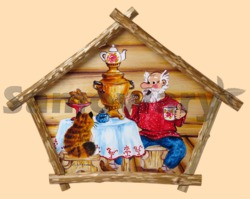 Каталог » Аксессуары для самоваров » Панно из бересты с самоварами » Панно на дереве Дед у самовара (малое)