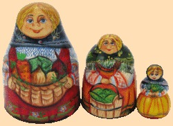 Каталог » Матрёшки » Матрёшки 3-х местные и менее (сюжетные) » Матрёшка Семёновна на базаре (3 места)