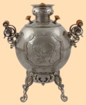 Самовар: - объем 5 литров - материал: никелированная латунь (покрытие не боится воды) - растапливается с помощью дров или шишек - вес самовара - 6,7 кг - производитель Россия (Тула) - самовар современный, находится в этой категории так как это эксклюзивная модель