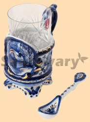 В комплекте: подстаканник, хрустальный стакан, керамическая ложка Материал: керамика с позолотой Производитель Гжель