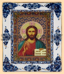 Плакетка Гжель Образ Иисуса Христа позолоченная (арт. 36889)