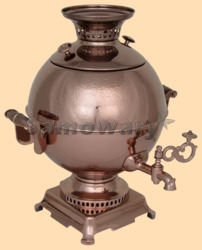 Самовар: - объем 5 литров - на самоваре установлен терморегулятор, который отключает самовар при закипании - материал латунь, покрытая медью (красноватый цвет) - ручки самовара изготовлены из пластика (по вашему желанию самовар может комплектоваться как чёрными, так и белыми ручками) - мощность ТЭНа 1,5 кВт (время закипания самовара в районе 20 минут) - производитель Тула