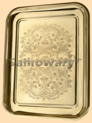 Размер 31 на 41 см Материал полированная латунь На внутренней поверхности подноса нанесён узор методом холодной штамповки Вес латунного подноса 1200 гр. Производитель Россия