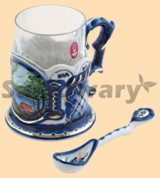 В комплекте: подстаканник, хрустальный стакан, керамическая ложка