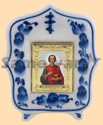 Каталог » Гжель » Киоты, лики, образы, плакетки Гжель » Киот Гжель Пантелеймон Целитель №4