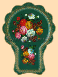Каталог » Подносы Жостово » Подносы Жостово в форме ключа » Поднос жостовский Розы на зелёном (ключ)