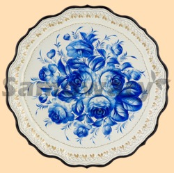 Каталог » Подносы Жостово » Подносы Жостово круглые » Поднос жостовский Гжельские цветы (круг)