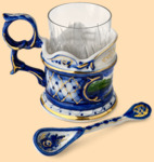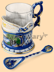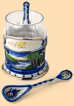В комплекте: подстаканник, хрустальный стакан, керамическая ложка