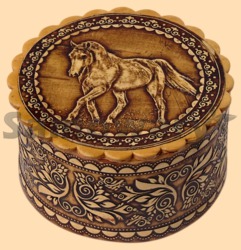 Каталог » Шкатулки » Шкатулки Береста Уральская » Шкатулка из уральской бересты Мустанг (6 см)