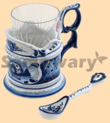 В комплекте: подстаканник, хрустальный стакан, керамическая ложка Материал: керамика с позолотой Производитель Гжель