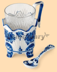 В комплекте: подстаканник, хрустальный стакан, керамическая ложка