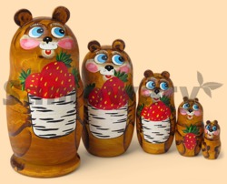Каталог » Матрёшки » Матрёшки 5-ти местные (сюжетные) » Матрёшка Медведь с клубникой (5 мест)