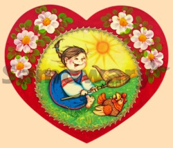 Доска разделочная сердце Девочка с петухом (арт. 39155)