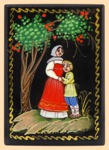 Каталог » Шкатулки » Шкатулки Палех (лаковая миниатюра) » Шкатулка Палех Алёнушка с Иванушкой (квадратная)