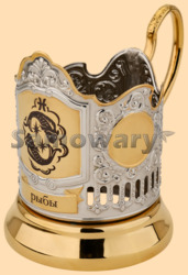 Подстаканник Знак Зодиака - Рыбы (20 февраля - 20 марта, никель-золото, лазерная гравировка) (арт. 3964)