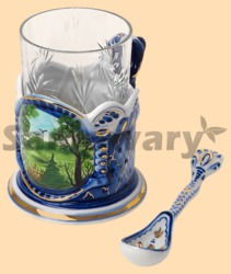 В комплекте: подстаканник, хрустальный стакан, керамическая ложка Материал: керамика Производитель Гжель
