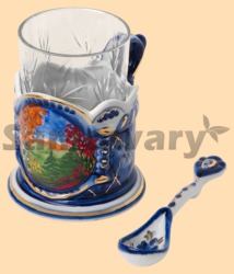 В комплекте: подстаканник, хрустальный стакан, керамическая ложка