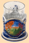 Каталог » Подстаканники » Подстаканники ГЖЕЛЬ с цветным рисунком » Подстаканник Гжель Осенний вальс (позолочённый, в наборе)