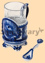 В комплекте: подстаканник, хрустальный стакан, керамическая ложка Материал: керамика Производитель Гжель