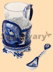 В комплекте: подстаканник, хрустальный стакан, керамическая ложка Материал: керамика Производитель Гжель