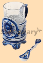 В комплекте: подстаканник, хрустальный стакан, керамическая ложка Материал: керамика Производитель Гжель