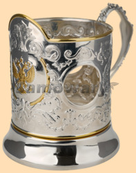 Подстаканник серебряный Герб (частично позолоченный) (арт. 4022)