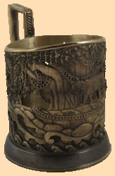 Диаметр основания - 7,5 см, высота подстаканника (без стакана) - 9 см. Материал - латунь (литье) Покрытие - никель (чернение) Данный подстаканник дополнительно можно покрыть серебром и позолотить некоторые его элементы. Это увеличит стоимость подстаканника на несколько тысяч рублей, более подробную информацию по срокам и ценам вы можете уточнить у наших менеджеров. Производитель Россия