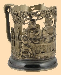Каталог » Подстаканники » Подстаканники Эксклюзивные Сказки и Русский быт » Подстаканник эксклюзивный Чаепитие №2 (литьё)