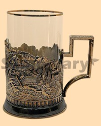 Диаметр основания - 7,5 см, высота подстаканника (без стакана) - 9 см. Материал - латунь (литье) Покрытие - никель (чернение) Данный подстаканник дополнительно можно покрыть серебром и позолотить некоторые его элементы. Это увеличит стоимость подстаканника на несколько тысяч рублей, более подробную информацию по срокам и ценам вы можете уточнить у наших менеджеров. Производитель Россия