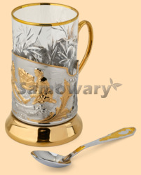 В комплекте подстаканник, хрустальный стакан, чайная ложка