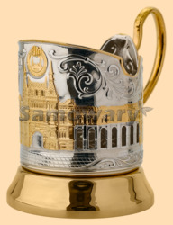 Каталог » Подстаканники » Подстаканники Москва - символы столицы » Подстаканник ГУМ (никель-золото, штампованный)