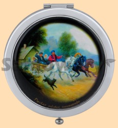 Каталог » Зеркальца карманные » Зеркало металлическое складное Тройка лето (круглое)