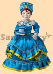 Каталог » Бабы, куклы, солохи на чайник для самовара » Кукла на чайник для самовара Купчиха с чашкой (бирюзовая, фарфор)