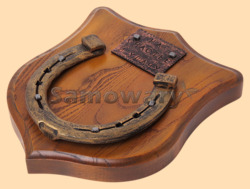 Медальон для подковы изготовлен из бука, покрашен под дуб и покрыт матовым лаком