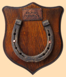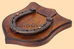 Медальон для подковы изготовлен из бука, покрашен под дуб и покрыт матовым лаком